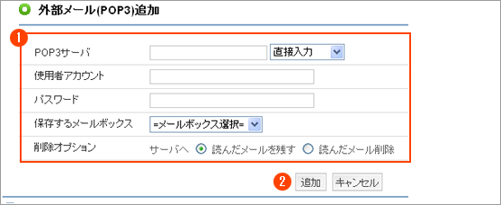- 削除オプション: 外部メールを追加した後、該当サーバにメールを削除するかどうかを選択します。