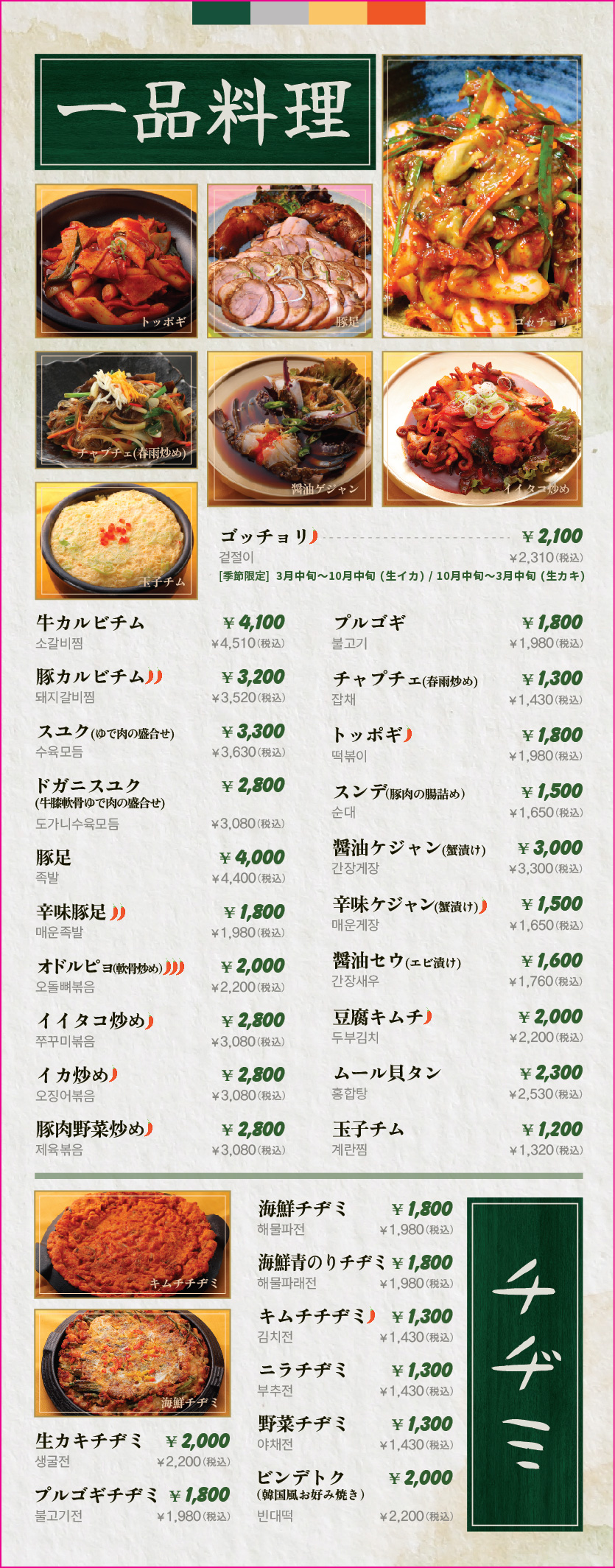 メニュー | チョンソル | 予約必須!赤坂・溜池山王で24時間営業の有名な韓国郷土料理屋